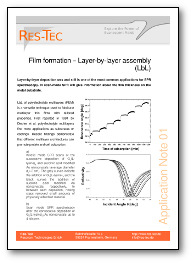 The subsequent adsorption of alternately charged polyelectrolytes (Layer-by-layer technique) has become a powerful and often used technique for the generation of functional polymer films. See how plasmons can help you to understand this process in the RES-TEC Application Note 01 (pdf).