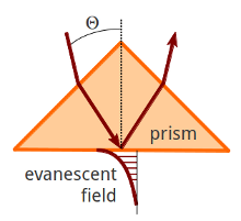 These “evanescent waves” generate what is known as the evanescent field (Figure). The evanescent field shows an exponential decrease in the normal direction of the plane of reflection.
