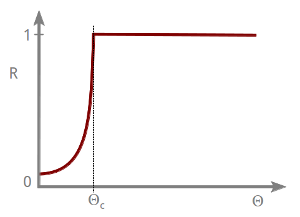 When a (laser) light beam is reflected at the base of a (glass) prism, the light is reflected according to Snell’s law at the interface. Above a critical angle