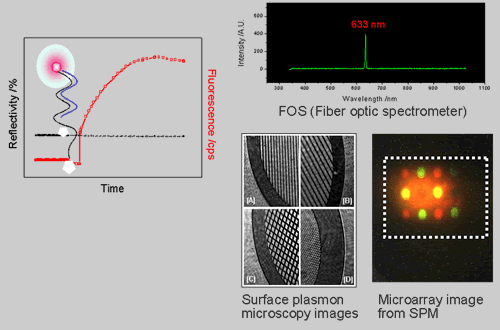 The ability to simultaneously monitor the interfacial refractive index changes and the fluorescence signals in real time offers a huge potential for applications of SPFS in surface immunoreaction detection.