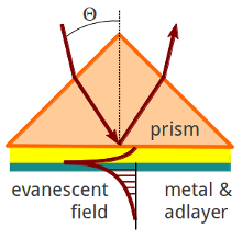 If an additional adlayer of a dielectric compound is attached to the metal layer, the resonance frequency, i.e. the angle at which the surface plasmon is detected shifts to larger angles.