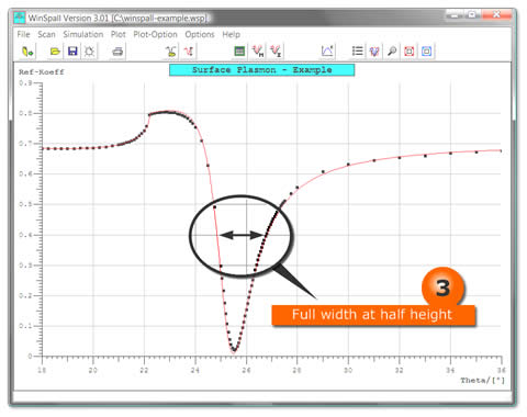 The full width at half maximum. The “width of the plasmon” of a blank substrate depends on the imaginary part of the dielectric constant of the metal. This is why “silver plasmons” are much sharper, narrower than “gold plasmons”. For the blank measurement it is appropriate to adjust e'' such that the width of the model curve describes the measured data.